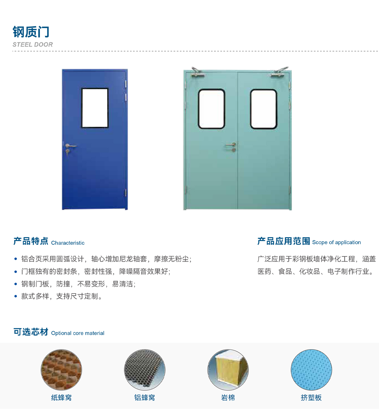 门框独有的密封条,密封性强,降噪隔音效果好;钢制门板,防撞,不易变形,易清洁,