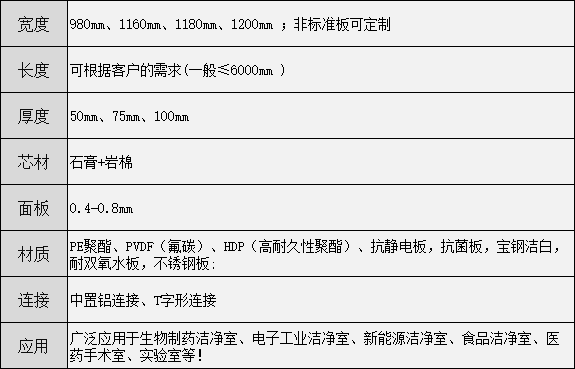 棉手工洁净板,使用彩涂板、不锈钢板、印花钢板等材质作为面材,内夹岩棉,采手工制作工艺。