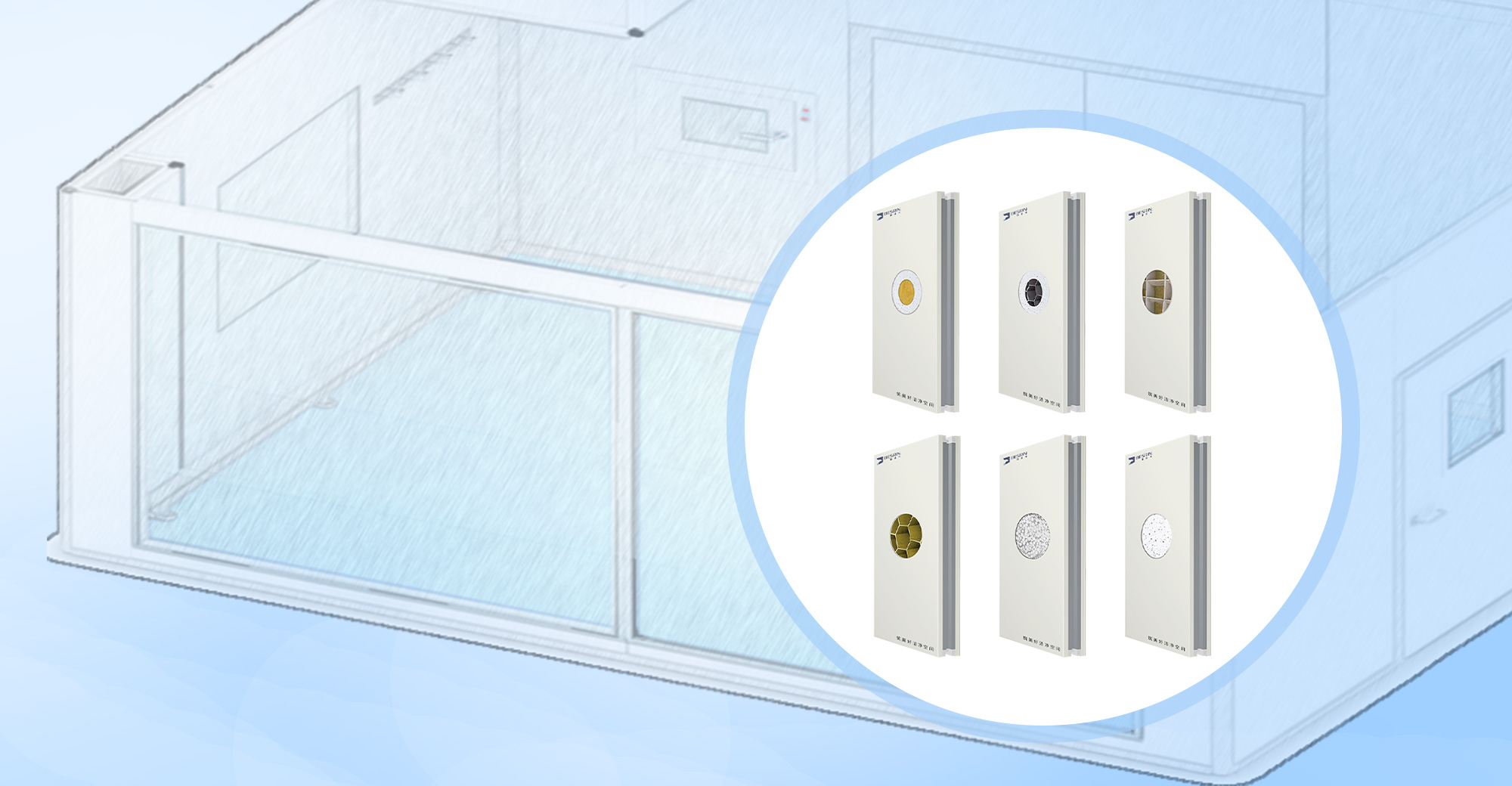 玻镁网格手工洁净板,使用彩涂板、不锈钢板、印花钢板等材质作为面材,芯层以上玻镁板和玻镁龙骨为支撑,经加压、胶水固化后制成。